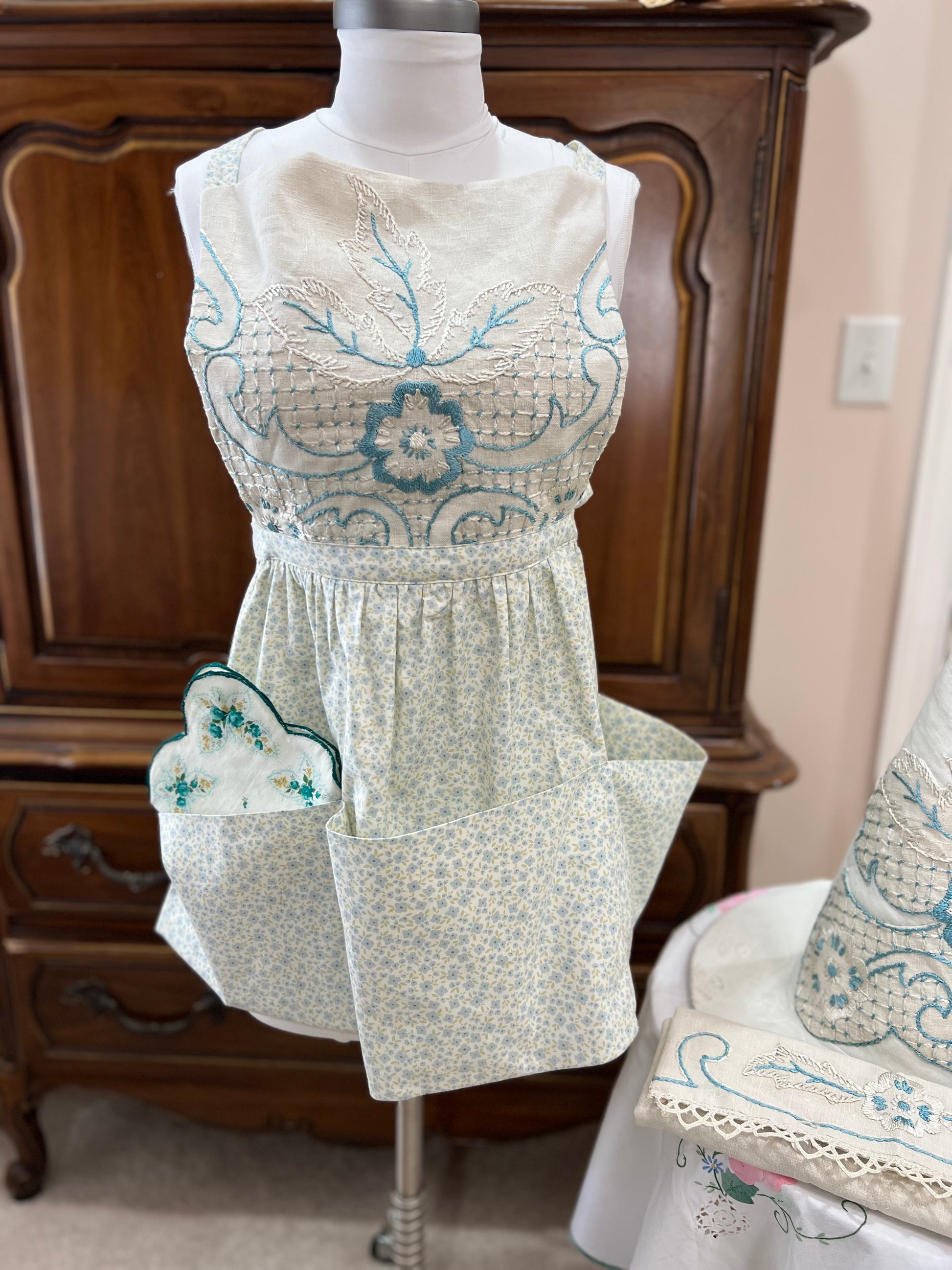 Blue and pearl embroidered spell working apron