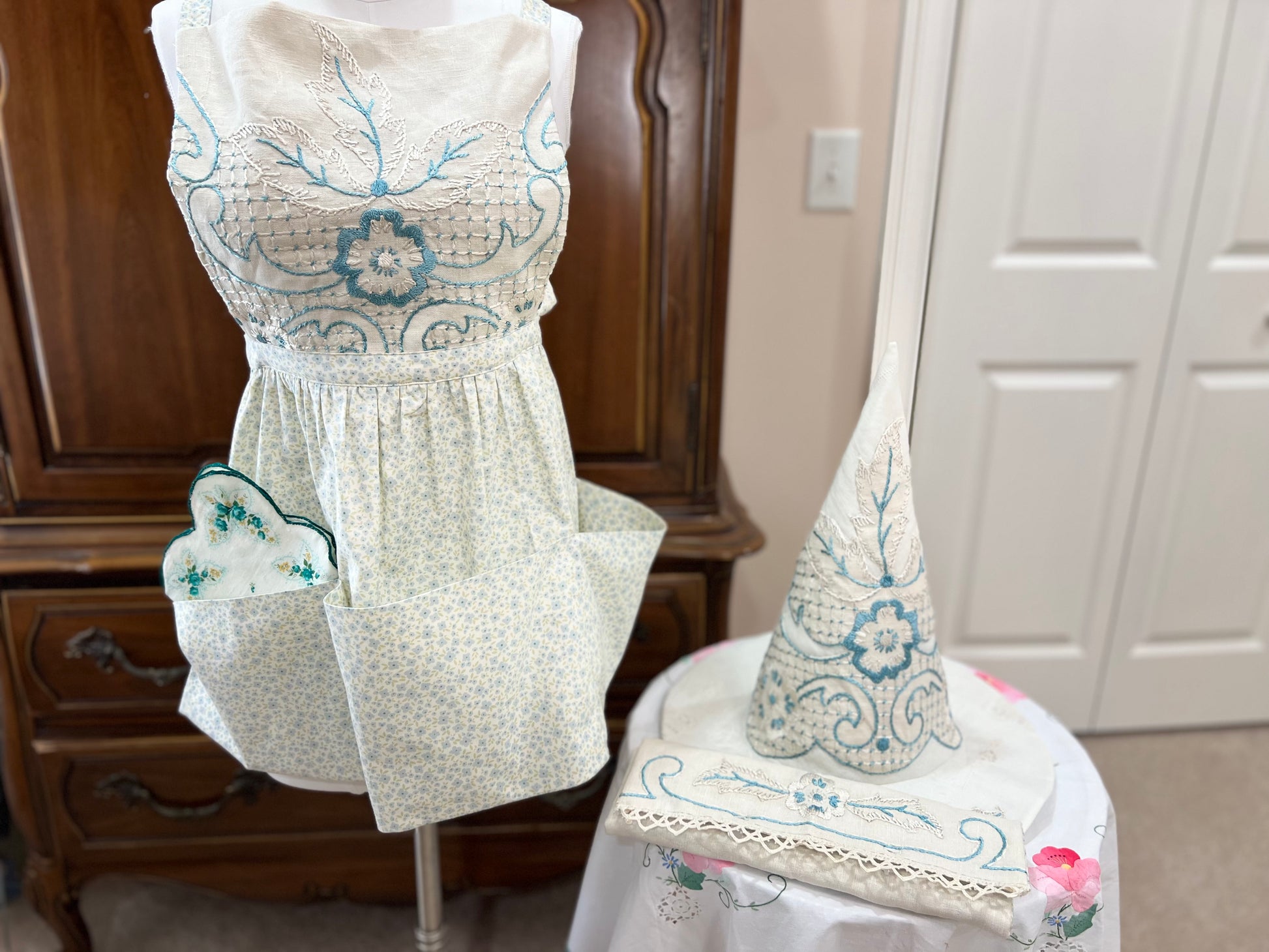 SO beautiful and the attention to detail in the embroidery and beadwork is will worth this one of a kind witch hat and matching apron. So unique and I love supporting a like minded small business owner!