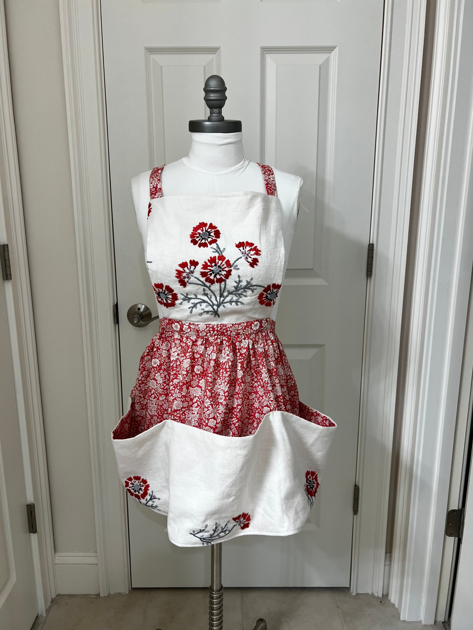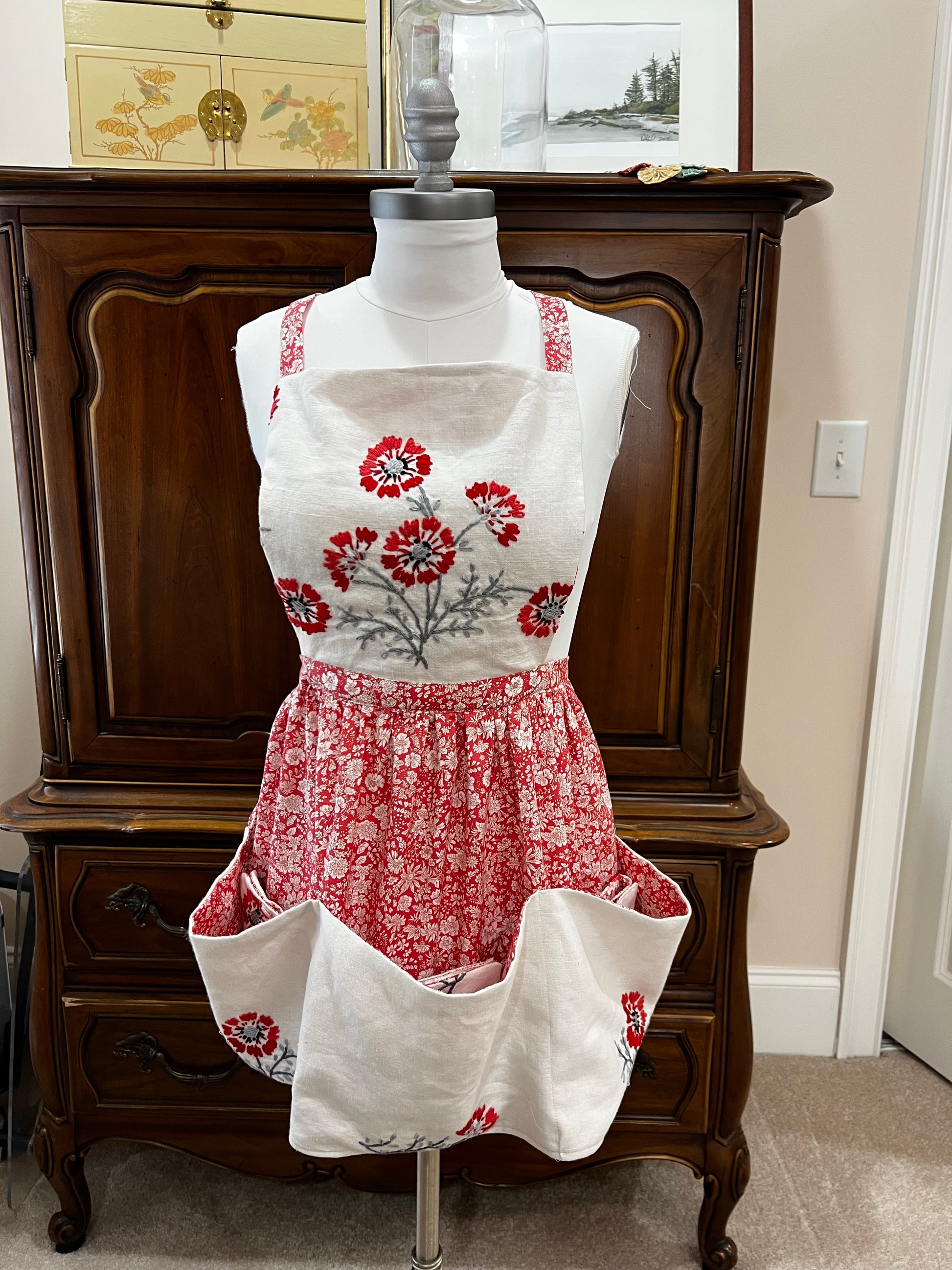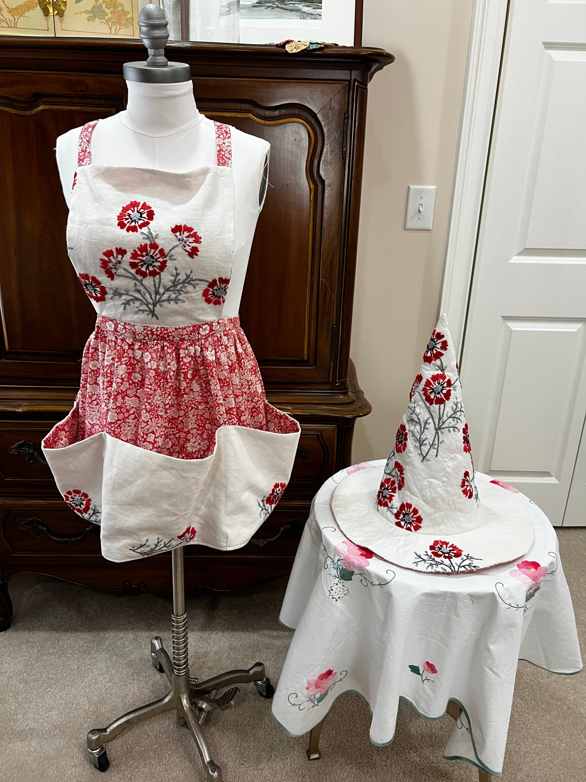 I love everything I use in my practice to be beautiful and practical. Most of my spell work is done under the night sky in the woods or in a dedicated circle in my back garden with a fire area. I use an apron to carry my supplies with me much like this one. It has three generous pockets to carry candles, tarot cards, herbs etc and it is beautiful. I also made a matching hat and accessories ( tarot card holder, herb sachet and candle holder). The back straps are adjustable.
